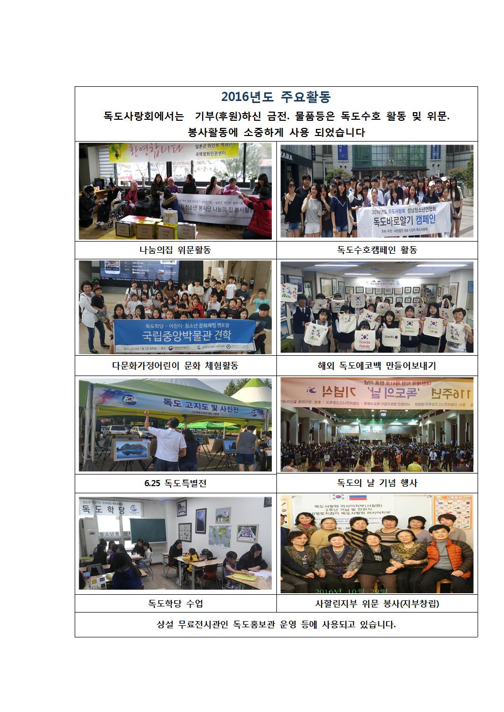 독도사랑회에 후원(기부)하신 기금등은 다음과 같이 소중히 사용 되었습니다.감사드립니다